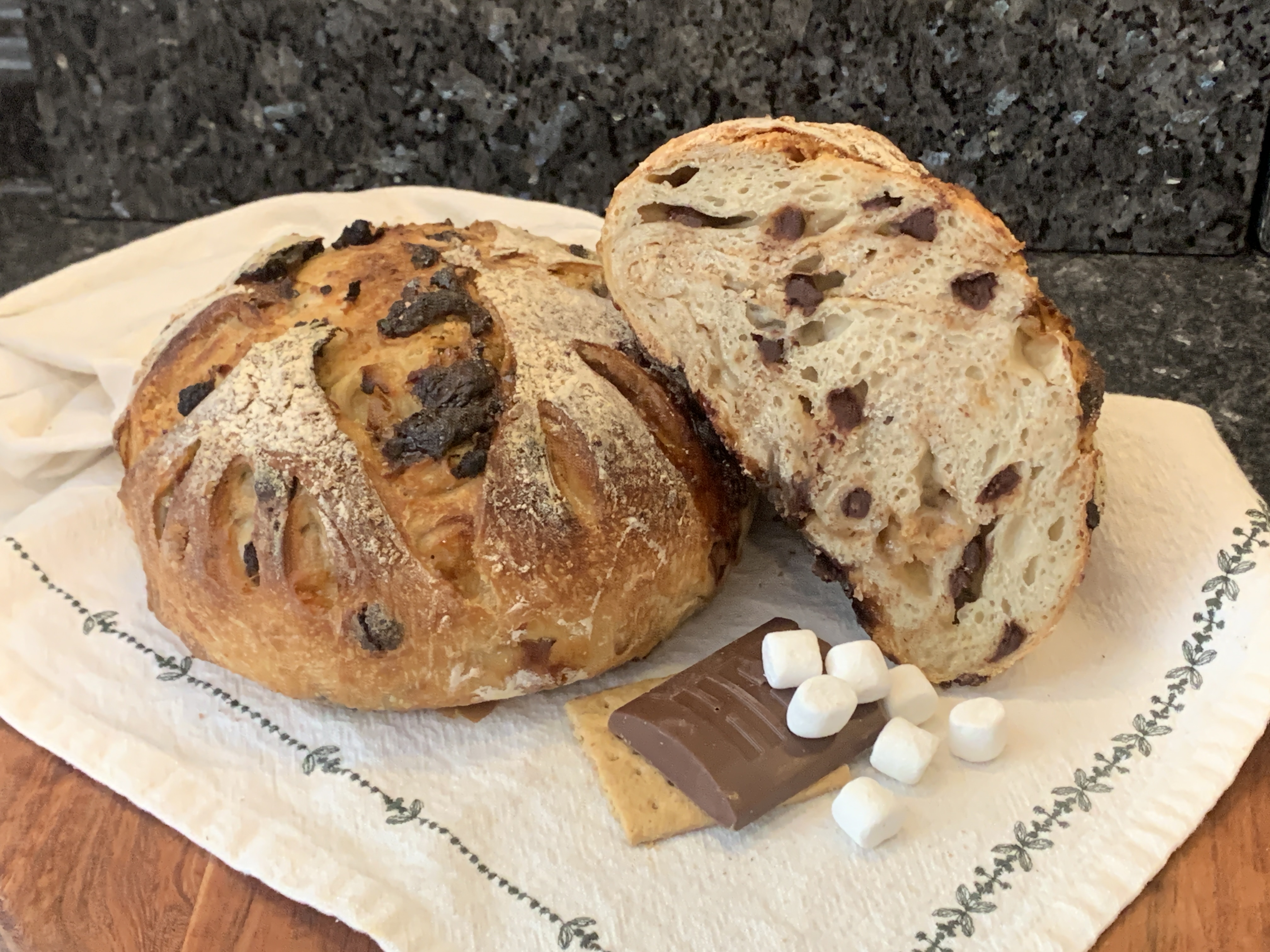 A signature sourdough bread with graham crackers, sweet marshmallows, and rich chocolate.